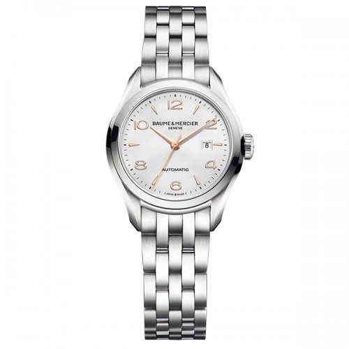 Con il suo design urbano, questo orologio Clifton con cassa in acciaio del diametro di 30 mm è animato da un calibro meccanico a carica automatica visibile attraverso il fondo cassa in vetro zaffiro. Il sobrio quadrante argentato con finitura satinata soleil presenta lancette e indici dorati e finestrella della data a ore 3. Proposto su un bracciale in acciaio dotato di chiusura tripla pieghevole con pulsanti di sicurezza, questo modello è l'espressione di un elegante stile urbano dal fascino senza tempo.
