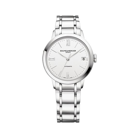 Classima 10495 OROLOGIO A CARICA AUTOMATICA CON DATARIO - 34 MM Con un quadrante argentato e le cifre romane, questo lussuoso modello automatico da donna si caratterizza per l’estetica essenziale e moderna, bilanciata da dettagli classici. Il segnatempo presenta fondo cassa in vetro zaffiro e bracciale in acciaio inossidabile con finitura lucida.