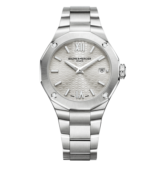Riviera 10614 OROLOGIO AL QUARZO, DATARIO, DIAMANTI - 36 MM Animato da un movimento al quarzo “Swiss Made”, questo Riviera è ornato da un quadrante argentato e accompagnato da un bracciale in metallo. Fedele al design originale, mantiene la lunetta dodecagonale, l’esclusivo decoro e il sistema di intercambiabilità del cinturino. Un segnatempo di carattere per una personalità decisa.