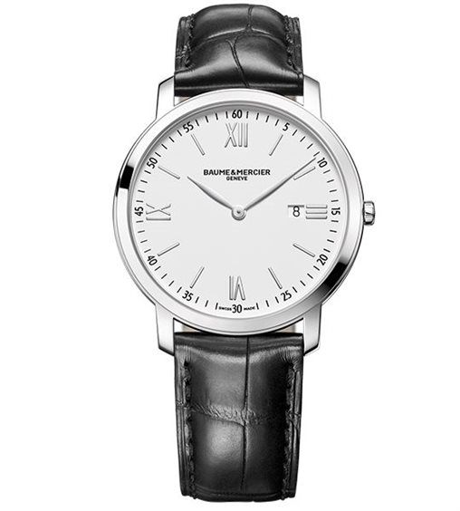 Con la sua cassa ultrapiatta in acciaio del diametro di 39 mm, questa versione decisamente urbana dell'orologio Classima è animata da un calibro al quarzo Swiss-made. Sobrio e dall'aspetto quasi minimalista, questo orologio sottile dotato di quadrante bianco con due lancette e finestrella della data a ore 3 è proposto con un cinturino in pelle di alligatore nero chiuso da fibbia ad ardiglione che ne rispetta lo stile classico.