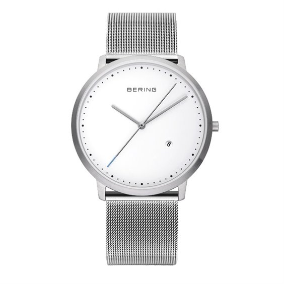 Classico, purista, eppure eccitante. Stile perfetto combinato al minimalismo contemporaneo. Ispirata al design danese, la COLLEZIONE CLASSIC presenta un orologio unico, creato per dare un tocco di stile al look quotidiano. La cassa in acciaio inossidabile satinato color argento, realizzata in puro acciaio inox chirurgico (316L) di alta qualità, insieme al moderno cinturino in magila Milanese color argento, realizzano il classico look BERING. La sofisticata fattura del cinturino in magila Milanese dà all’orologio un tocco di raffinatezza, quasi di nobiltà. Il datario integrato e gli indici puntiformi in completano perfettamente il suo look classico. Il vetro zaffiro cristallino, antigraffio e particolarmente resistente garantisce una visione chiara del delizioso quadrante.