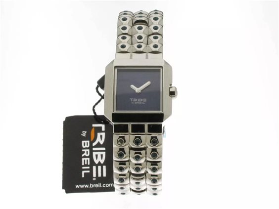 Orologio Breil Tribe da donna, cassa quadrata in acciaio di dimensioni 25 x 25 mm, quadrante blu abbinato a un bracciale decorato con strass blu.