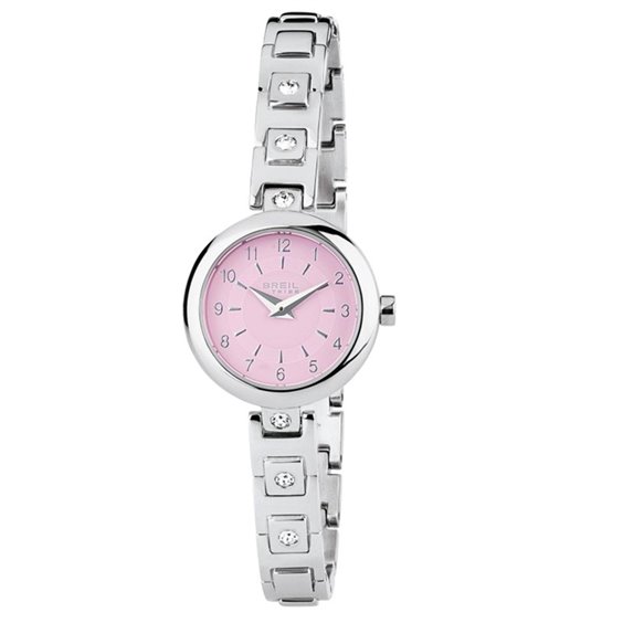 Orologio solo tempo da donna della collezione Dots, quadrante rosa con numeri arabi, cinturino in acciaio con inserti in cristalli. Movimento al quarzo.