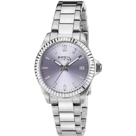 Orologio solo tempo da donna della collezione classic Elegance Extension con cassa in acciaio. Quadrante lilla con datario, indici e sfere con Luminous. Cinturino in acciaio con chiusura Diver e fermaglio di sicurezza, movimento al quarzo.