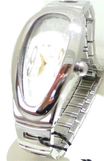 orologio donna acciaio movimento al quarzo solo tempo, corona a scatto cassa di forma ovale 23 X 40 mm; fondello serrato a scatto; vetro minerale; cinturino morbido in acciaio accorciabile