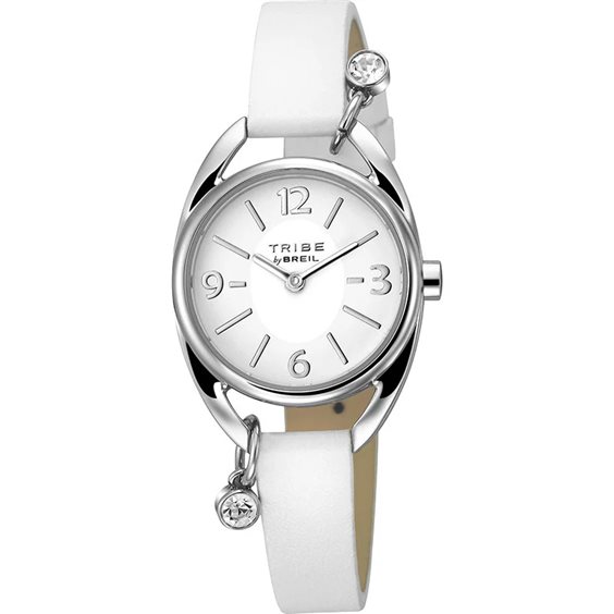 Orologio , Tribe By Breil, Collezione TRAP, orologio solo tempo, donna, cassa in acciaio 28mm, Movimento al quarzo Miyota Y120, Resistenza all'acqua W.R. : 3 atm, Chiusura ad ardiglione, Quadrante bianco, Cinturino bianco con charms bianchi.