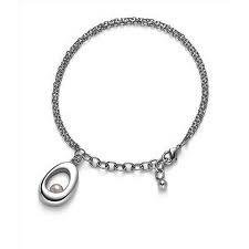 Bracciale in acciaio con pendente a goccia di misura mm 20 x 14 e perla coltivata di fiume di colore rose' di mm 5, maglia doppia con lavorazione rolo lunghezza massima catena 20 cm. Possibilita' di essere accorciato con ausilio degli anellini.