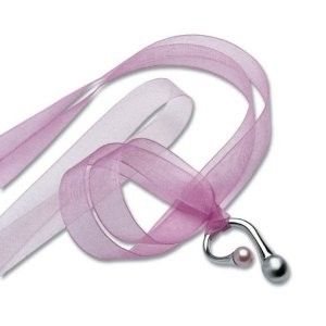 ollezione Steel Deco, Collana nastrino con pendente in acciaio lucido con: perla in acciaio satinato, Perla rosa di colore naturale. Misura regolabile.