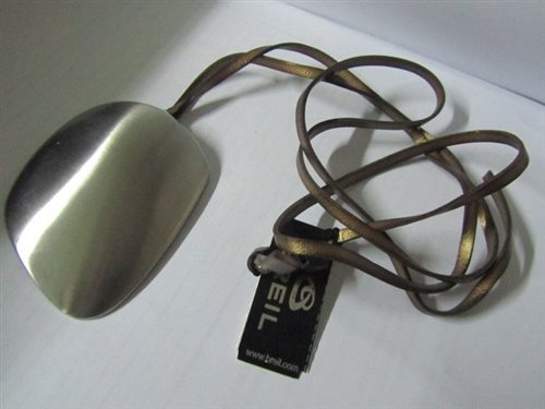 pendente donna - acciaio satinato - collana in cuoio con trattamento color bronzo - lunghezza cm.70 -dimensioni pendente cm 7 x 6 - spessore mm 6 a scalare.