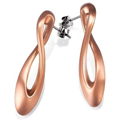 Orecchini in acciaio color oro rosa satinato a forma di infinito