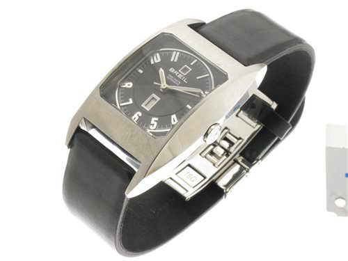 OROLOGIO BREIL MODELLO WISH DAY DATE AUTOMATIC CON CINTURINO IN PELLE NERA E CASSA RETTANGOLARE IN ACCIAIO