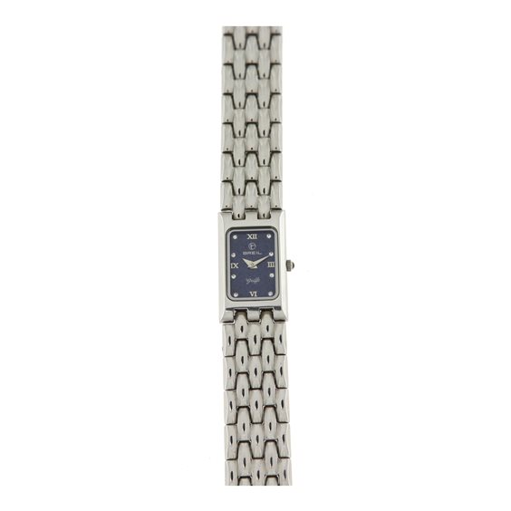Dimensioni cassa: 18 x 28 mm. Quadrante colore blu con indici numeri romani e brillanti.