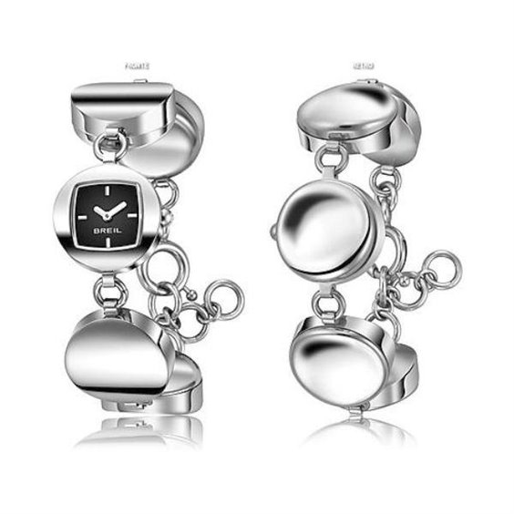 Orologio Breil double face da una parte orologio dall'altra bracciale. Cassa in acciaio mm 19, sfondo nero corona e fondello a pressione lunghezza max 21.5 cm.