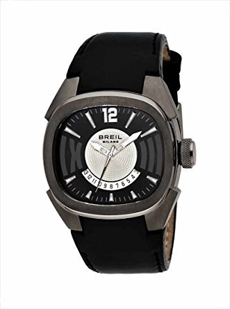 Orologio Breil da uomo in acciaio colore antracite, quadrante bicolore nero e grigio con cinturino in pelle nera.