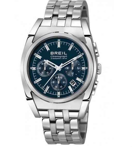 Orologio con movimento al quarzo e funzione cronografica, indicazione del ciclo delle 24 ore e datario, cassa e bracciale in acciaio bilux con chiusura sicura a pulsanti, fondello a vite, pulsanti rettangolari con piano scavato, inserti in policarbonato trasparente sulle anse, quadrante blu con particolari degli indici bianchi, sfere con trattamento luminescente. Diametro cassa 42 millimetri e impermeabilità garantita fino a 100 metri. peso gr 140.