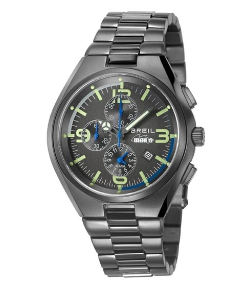 Cronografo con allarme, in acciaio bilux con trattamento IP gun. La particolare cura che caratterizza il design del quadrante e la complessa maglia del bracciale con chiusura Diver ne fanno un orologio dalle altissime prestazioni e dall'enorme fascino.
