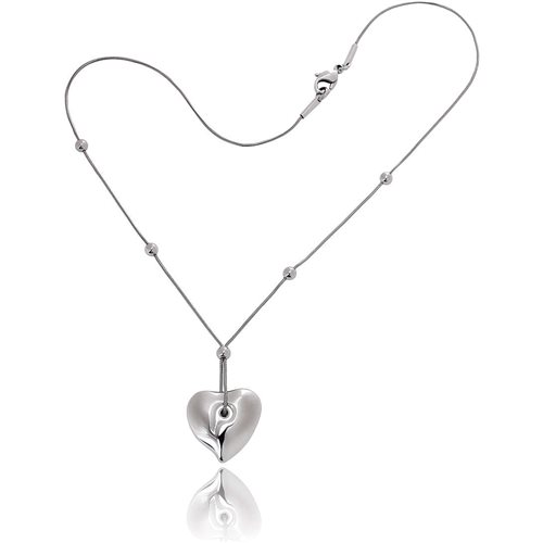 Collana in acciaio inossidabile, pendente a forma di cuore, con cinque palline sempre in acciaio lungo la catena.