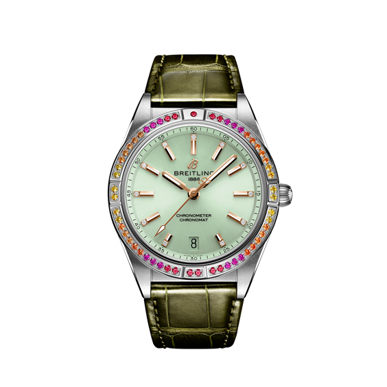 Con i suoi colori vivaci e la sua luminescenza, la capsule collection Chronomat South Sea evoca l’inebriante energia dell’estate, l’universo marino e una vegetazione lussureggiante. Disponibile in tre versioni distintive, la capsule collection Chronomat Automatic 36 South Sea è la briosa sorella dell’ultimo Chronomat da donna di Breitling. Di ispirazione moderna-retrò, questi orologi simbolo di eleganza nascono per le donne che vogliono distinguersi. Dotati di speciali quadranti laccati con lancette e indici dorati, indici delle ore in diamanti e lunette con pietre preziose incastonate dalle cromie intense, gli orologi Chronomat South Sea sono abbinati a cinturini in pelle di coccodrillo con fibbia deployante dai colori brillanti. Gli orologi Chronomat Automatic 36 South Sea sono alimentati dal calibro 10 firmato Breitling, un cronometro certificato COSC.