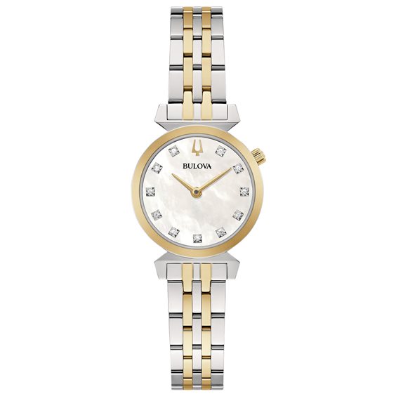 Orologio Solo Tempo Da Donna Di Bulova, Della Collezione Regatta Lady Petite. Orologio Con Cassa In Acciaio E Ip Gold Di Dimensioni 24 Mm. Orologio Con Cinturino In Acciaio E Ip Gold E Chiusura A Deployante. Orologio Solo Tempo Con Indici In Diamanti, Movimento Al Quarzo E Resistenza All'Acqua 3 Atm. La Referenza È 98P202