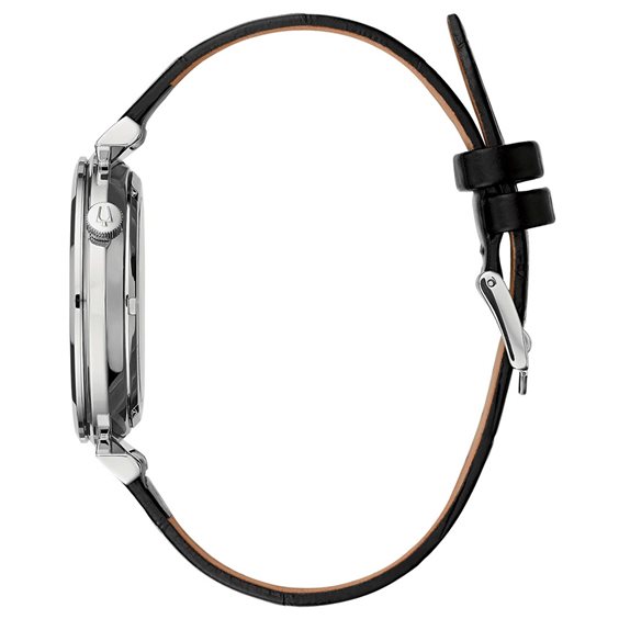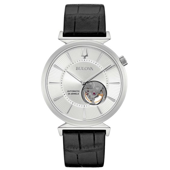 Orologio Automatico Da Uomo Di Bulova Della Collezione Classic Regatta. Orologio Con Cassa In Acciaio Del Diametro Di 44 Mm. Cinturino In Pelle Stampa Cocco Di Colore Nero E Chiusura Deployante. Indici A Tacche. Orologio Con Vetro Zaffiro, Fondello A Vista E Spessore Cassa 8,8 Mm. Resistenza All'Acqua Di 3 Atm. Movimento Automatico. La Referenza È 96A240