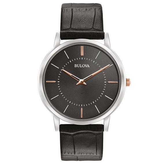 Orologio Di Bulova Da Uomo Della Collezione Ultra Slim. Modello Con Movimento Quarzo Analogico, Con Cassa Tonda In Acciaio, Cinturino Pelle Nera Alligatore E Vetro Minerale. Questo Modello Ha Quadrante Nero Con Dettagli Rose Gold Ip. La Cassa Ha Diametro 40 Mm E Spessore Di 5,5 Mm. La Resistenza All'Acqua È Di 3 Atm.