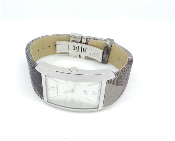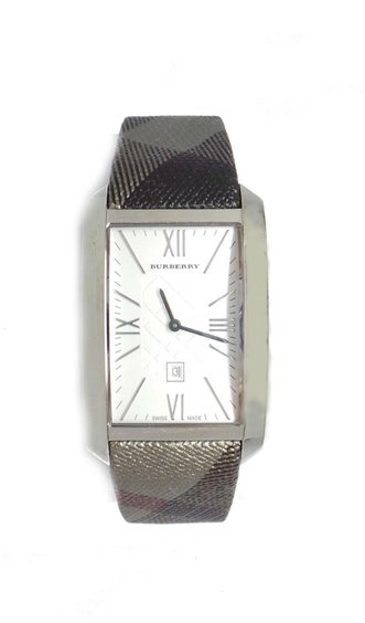 Orologio con movimento al quarzo Swiss made cassa rettangolare mm 30 quadrante bianco con datario. Fondello e corona a pressione impermeabile 50 metri, cinturino check sui toni dell'argento in tessuto con chiusura deployante. 2 anni garanzia e scatola.