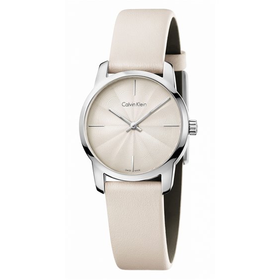 Orologio donna CALVIN KLEIN ccassa in acciaio lucido, quadrante beige con indici ai 12, 3, 6, 9; cinturino in pelle beige, chiusura ad ardiglione.Due anni di garanzia ufficiale.