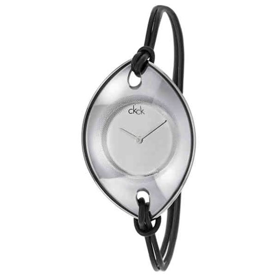 Orologio CK in acciaio con cinturino in pelle nero. Dimensioni quadrante: 30 x 45 mm. Misura bracciale unica.