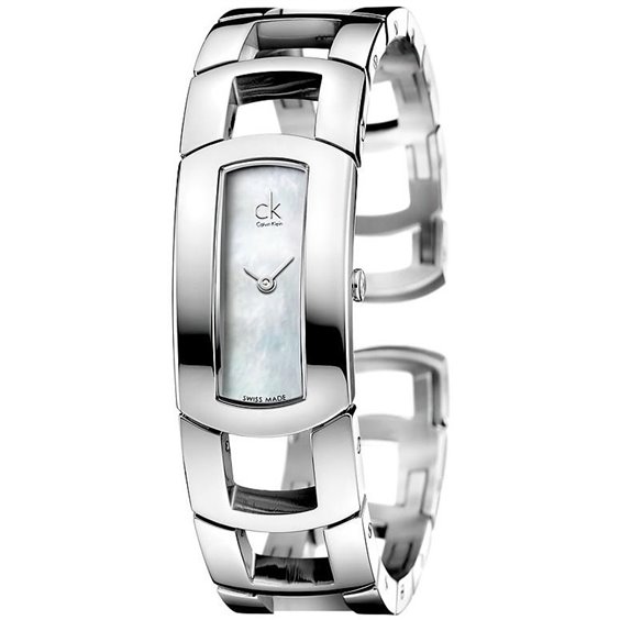 Orologio con cassa e bracciale in acciaio lucido, chiusura a schiava aperta sotto, quadrante madreperla, dimensioni cassa 19.50mm X 32mm, vetro minerale, fondo cassa con 4 viti.