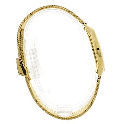 Cassa e bracciale in acciaio anallergico, trattato in PVD dorato Bracciale in maglia milanese Movimento svizzero, al quarzo, di ultima generazione Calibro ETA 901.001 Impermeabilità testata fino a 3 bar, corrispondenti a 30 metri di profondità in assetto statico Diametro cassa mm. 35,0 Vetro minerale ad alta trasparenza, anti-graffio e anti-riflesso. Fibbia di sicurezza scorrevole e regolabile Un segnatempo elegante che presenta un equilibrio estetico ricercato, col coordinamento cromatico tra cassa, bracciale e quadrante. Le rifiniture sono molto curate, come la parte elettronica e quella meccanica del movimento svizzero. SCATOLA ORIGINALE + GARANZIA.