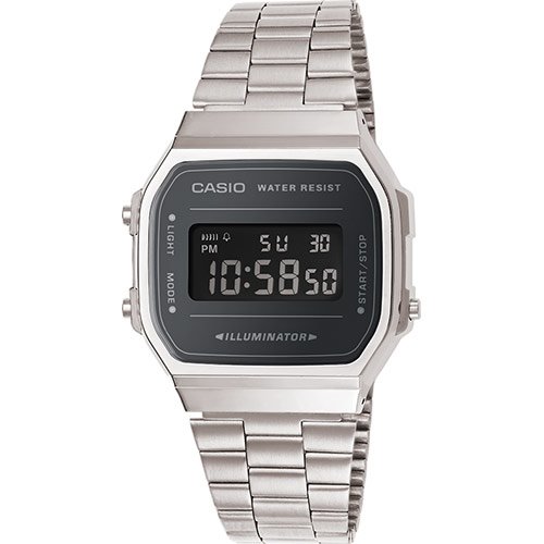 • Finitura a specchio • Impermeabile • Promemoria sonoro • Cronometro a centesimi di secondo • Retroilluminazione elettroluminescente