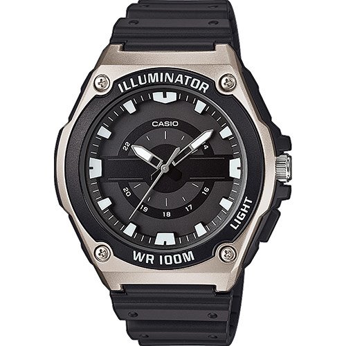 Luce LED: un diodo per l'emissione di luce è utilizzato per illuminare il quadrante; Vetro: acrilico; Cassa: in resina; Cinturino: in resina; La resina è di tipo sintetico, un materiale ideale per i cinturini grazie alla sua estrema resistenza e flessibilità; Chiusura: Buckle (fibbia); Durata batteria: 3 anni - 1 batteria; La batteria alimenta l'orologio per ca. 3 anni; Impermeabilità: classificazione 10 bar (ISO 22810), perfetto per nuotare e fare snorkeling; Dimensioni (A x L x P): 48,7mm x 46,7mm x 13,0mm; Peso: ca. 42,0 g.