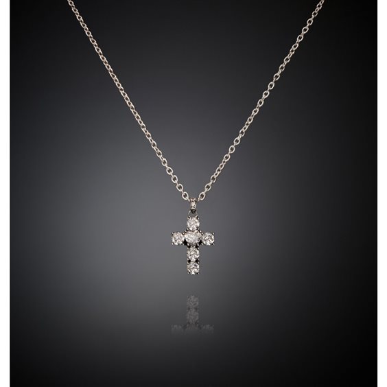 Collana pendente placcata argento con croce di zirconi, il centrale caratterizzato dall'iconico taglio a cuore. Croce: 13,5x17,5x3,5 mm (LxAxP) Catena: 38+7 cm