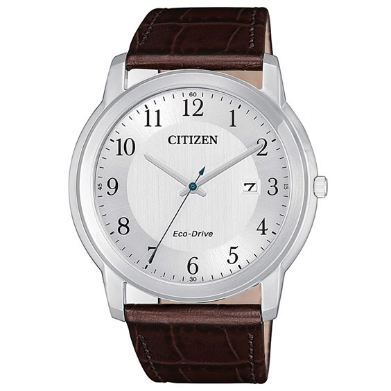 Questo orologio Citizen ha una cassa in acciaio inox con un diametro di 40 mm ed è dotato di un cinturino in Pelle Marrone scuro. All'interno ha un movimento Eco-Drive a carica luce con riserva di carica di 180 giorni dotato di datario ed è finito con un vetro di tipo minerale. L'orologio è impermeabile a 10ATM. Questo significa che l'orologio è adatto per nuoto e snorkeling.