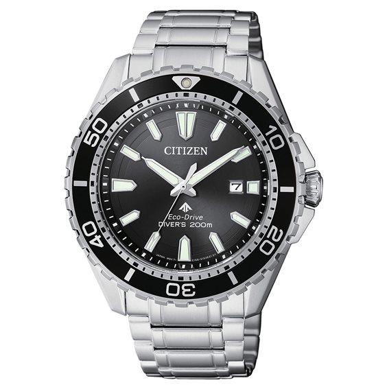 Orologio solo tempo da uomo della collezione Promaster con cassa in acciaio del diametro di 44,5 Mm. Quadrante nero con datario e indici con sfere ad alta luminosita’, ghiera girevole unidirezionale, vetro minerale. Cinturino in acciaio, movimento Eco Drive a carica luce con riserva di carica di 180 giorni. Resistente all’acqua 20 atmosfere.