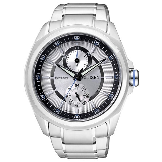 Orologio uomo , movimento ECO-DRIVE a carica luce con riserva di carica di 180 giorni, cassa e bracciale in acciaio, fondello a vite, diametro cassa 43mm., impermeabile 10atm.(100m.), quadrante grigio.