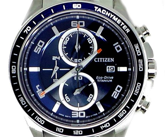 Orologio cronografo da uomo della collezione Super Titanio con cassa in Super Titanio Ti+IP con fondo serrato a vite del diametro di 43 Mm. Quadrante blu con datario e vetro zaffiro, cinturino in Super Titanio Ti+IP. Movimento Eco Drive a carica luce con riserva di carica di 8 mesi. Resistente all'acqua 10 atmosfere.