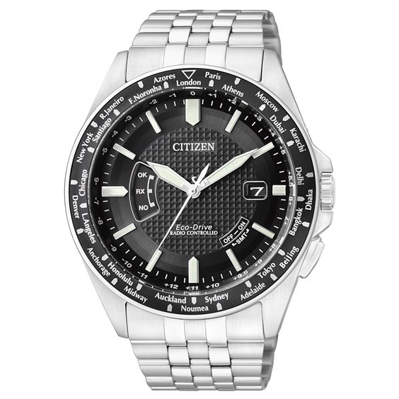 Info generali Nome: Radio Controlled Eco-Drive Sottocategorie: Radio Controlled Impermeabilità: 20 Bar (Immersione) Colore del quadrante: Nero Colori lancette (h,m,s): Fluorescente, fluorescente, bianco Info cassa orologio Diametro: 44 mm Spessore della cassa:11 mm Materiale Cassa: Inox Materiale del fondello: Inox Retro cassa: Fondello a vite Vetro: Zaffiro Materiale ghiera: Inox Funzione ghiera: Slide-rule Info movimento Tipo di movimento: Radiocontrollato Marca del Movimento: Miyota Parte movimento numero: H145 Tipo di calendario: Data Battery ECO Drive Info cinturino Cinturino in acciaio inossidabile Materiale del cinturino Metallo Lunghezza del cinturino 160 - 230 mm Tipo di chiusura:Chiusura pieghevole con pulsanti Larghezza banda: 22 mm Colore del cinturino: Acciaio