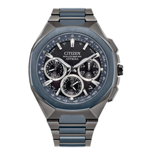 Limited Edition CITIZEN ATTESA SATELLITARE CC4106-74E dotato di GPS Satellite Wave ed alimentato dal sistema Eco-Drive. Cassa in titanio con trattamento DLC nero e BLU da 44 mm, vetro zaffiro antiriflesso, lunetta in ceramica. Autonomia 5 anni in modalità risparmio.