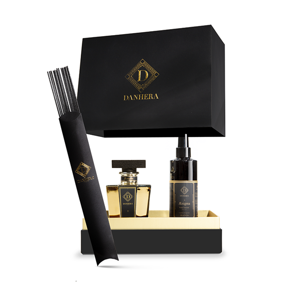 FRAGRANZA: AENIGMA - Un Cofanetto-tempio in cui il lusso si fa essenza. Nero e oro, scultoreo, nato per custodire il mito delle nostre Fragranze Leggendarie. Aprirlo è un rito: la luce dorata si accende, il Profumo entra in scena, l’emozione si fa ricordo. Il Cofanetto Luxury Medium contiene: Decanter Impero GOLD medium 250 ml, Spray Professional 250 ml