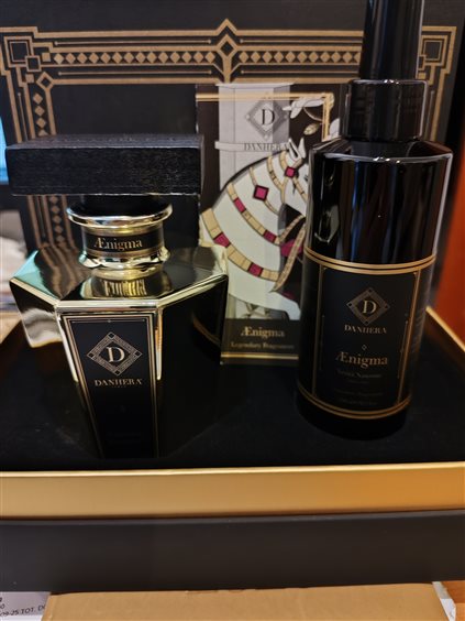 FRAGRANZA: AENIGMA - Un Cofanetto-tempio in cui il lusso si fa essenza. Nero e oro, scultoreo, nato per custodire il mito delle nostre Fragranze Leggendarie. Aprirlo è un rito: la luce dorata si accende, il Profumo entra in scena, l’emozione si fa ricordo. Il Cofanetto Luxury Medium contiene: Decanter Impero GOLD medium 250 ml, Spray Professional 250 ml