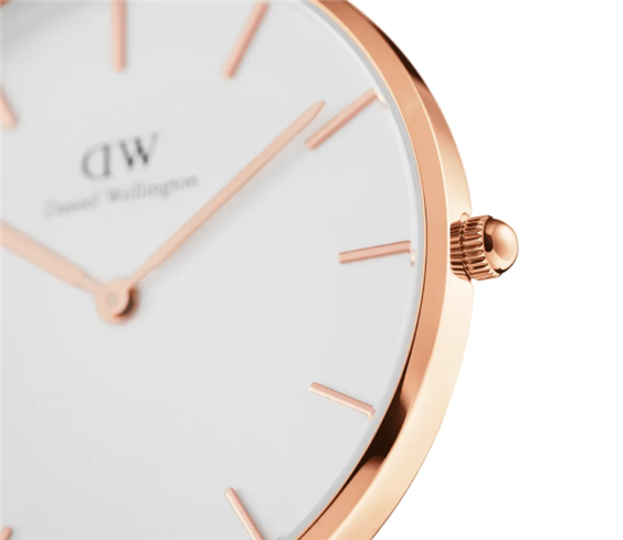 SKU DW00100305 Spessore della cassa 6mm Colore quadrante Bianco guscio d'uovo Meccanismo Japanese Quartz Movement Cinturino Acciaio inox con doppia placcatura (316L) Cinturino Cinturino in maglia milanese Colore cinturino Oro rosato Cinturini intercambiabili No Resistente all’acqua fino a 3ATM (Resistente alla pioggia)