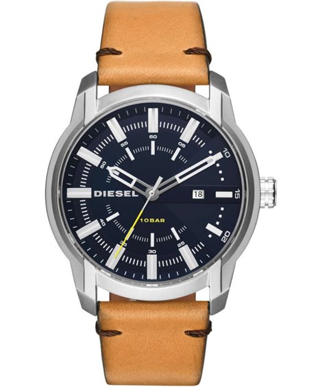 OROLOGIO DA UOMO DIESEL CON CASSA ACCIAIO E CINTURINO IN PELLE MARRONE. QUADRANTE BLU.