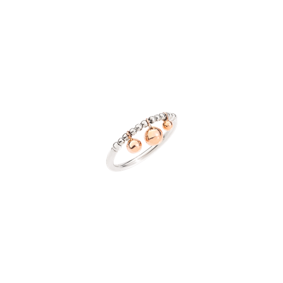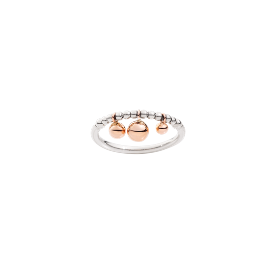 Anello bollicine in argento 925 con sfere in oro rosa 9K e argento 925. Spumeggianti sorprese brillano nella collezione Bollicine! Crea un cocktail speciale di eleganza con anelli, collane, bracciali e orecchini: gioielli effervescenti, in argento e oro rosa.