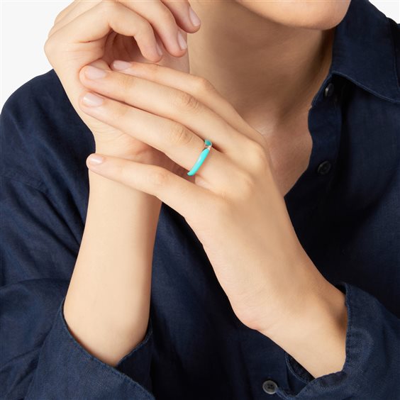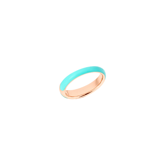 Una collezione intramontabile, da collezionare e tramandare! Tra riflessi d’oro, argento e titanio, la collezione Rondelle svela tutta la sua allegra originalità. Anello rondelle in argento dorato oro rosa 18K e smalto bi-color turchese.