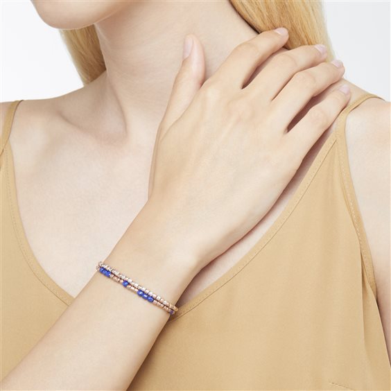 Bracciale mini granelli in argento 925 e oro rosa 9K, catena e anello brisè in acciaio, t-bar in oro rosa 9K, piastrine in argento e acciaio. Ago in acciaio incluso.