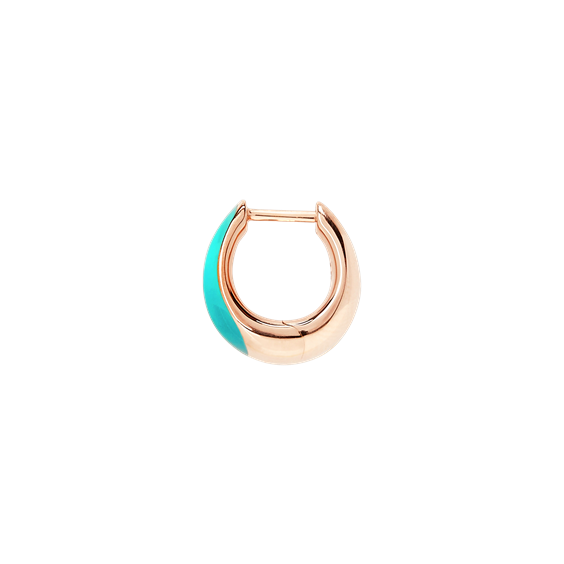 Una collezione intramontabile, da collezionare e tramandare! Tra riflessi d’oro, argento e titanio, la collezione Rondelle svela tutta la sua allegra originalità. Orecchino rondelle in argento dorato oro rosa 18K e smalto turchese. Mezzo paio.