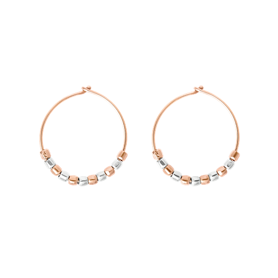 Orecchini cerchio grande oro rosa 9K con mini granelli in oro rosa 9K e argento 925. Venduti a coppia.
