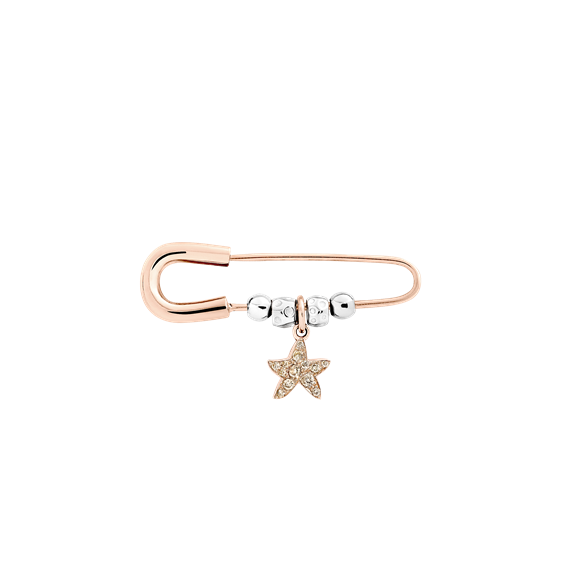 L’essenziale è visibile agli occhi! L’eccellenza orafa splende nella collezione Essentials: in oro o con diamanti, l’intreccio infinito di catene luccica fra gioielli a tutto tondo. Spilla Essentials in argento dorato oro rosa 18K, due stopper in argento 925 e due componenti Granelli in argento 925.