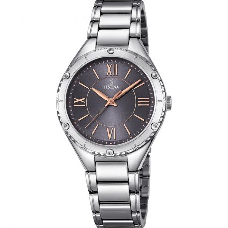 festina donna dal quadrante insolito nella colorazione viola prugna.Solo tempo tre sfere. chiusura del bracciale a pulsante, fondello serrato a pressione.elegante nella sobrietà, alternativo nella colorazione.